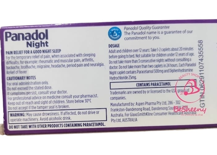 بنادول نايت للنوم Panadol Night. هو منتج قد يساهم في تسكين وخفض الحرارة من براند بنادول. حيث يساعد على تسكين آلام الأسنان و الدورة الشهرية، وآلام العضلات والمفاصل. كذلك يساهم في خفض الحمى والزكام والأنفلونزا والآلام المصاحبة لهم بشكل مؤقت، ليتيح لك النوم براحة وسهولة. “يستخدم تحت إشراف طبي”