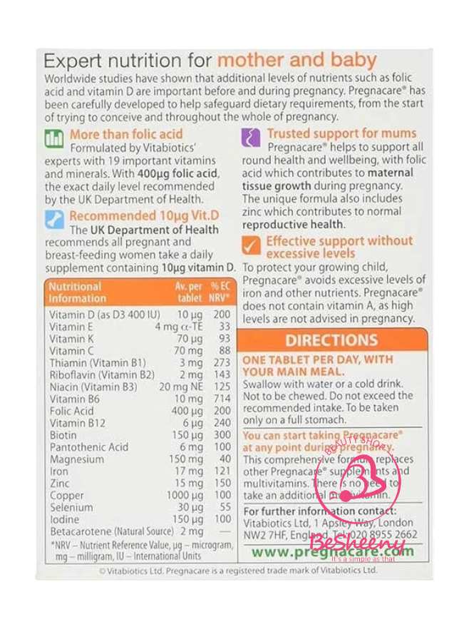 معلومات حول برجناكير أوريجنال لدعم صحة الحامل Pregnacare Original: