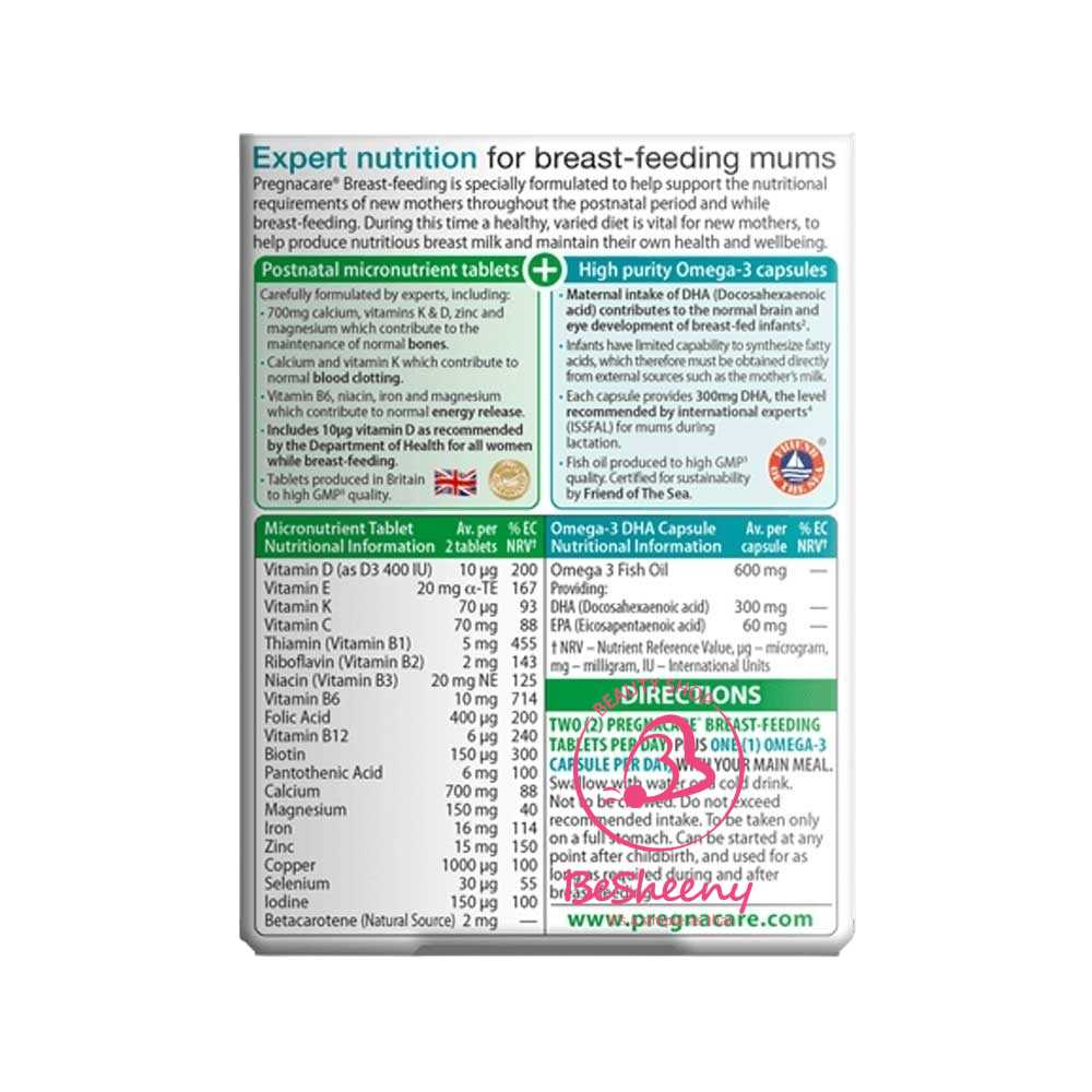 مكونات برجناكير لدعم الرضيع والرضاعة Pregnacare Breast Feed: