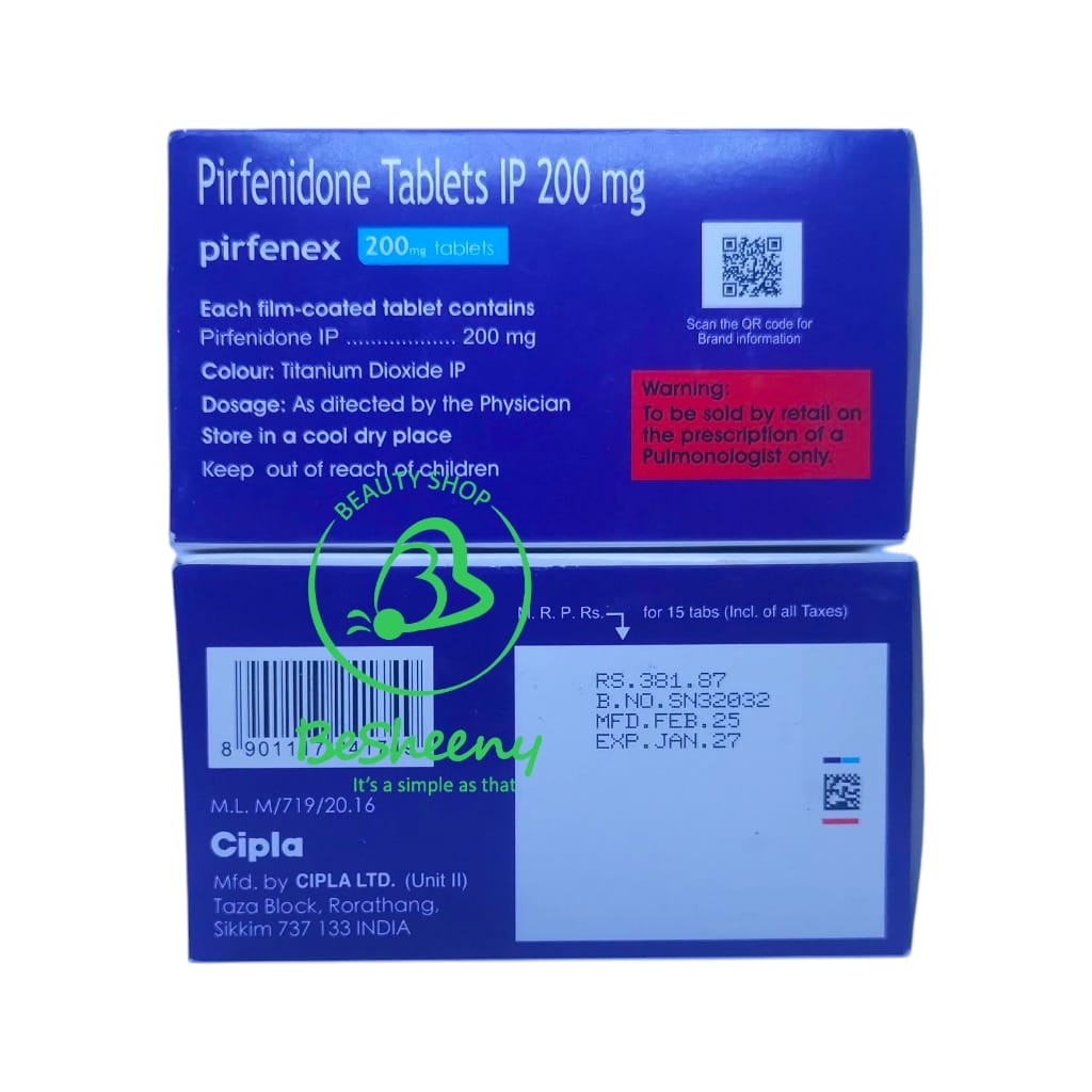 بيرفينكس أقراص 200 مجم pirfenex. (مادة فعالة: بيرفينيدون / Pirfenidone). هو دواء موصوف طبيًا يُستخدم أساسًا في حالات التليف الرئوي (Idiopathic Pulmonary Fibrosis – IPF) لتقليل تقدم النسيج الندبي في الرئة.