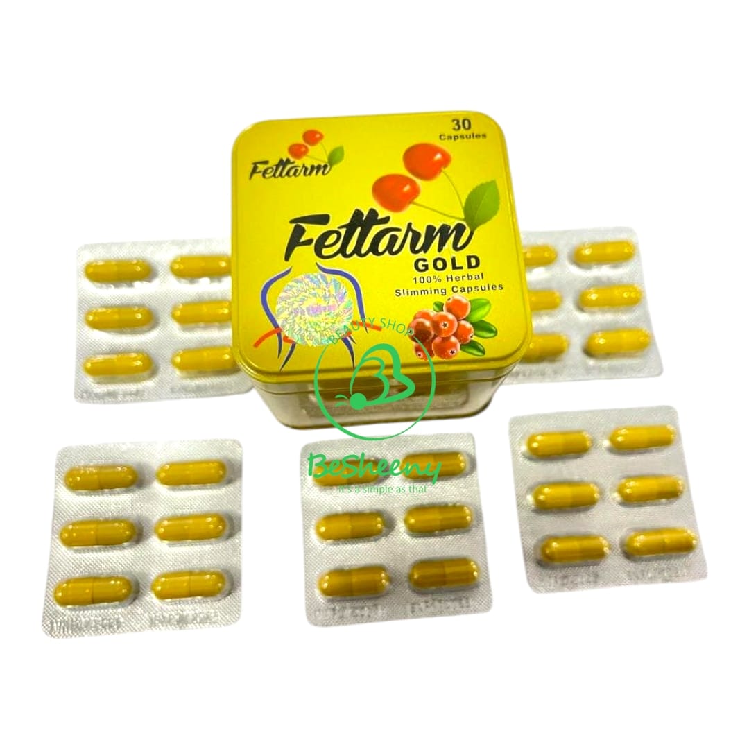 فيتارم جولد كبسول للتخسيس – Fettarm Gold Slimming Capsule. هى واحدة من احدث وأقوى منتجات التنحيف وحرق الدهون. حيث تعمل على زيادة معدلات الحرق في الجسم. مما يؤدي إلى التخلص من الدهون المخزنة. كما تمنع الجسم من امتصاص الدهون مرة أخرى من الطعام. كما أنه منتج فعّال جداً ولا يسبب أي ضرر للجسم، ويُعد الحل الأمثل للتخلص من الدهون. أيضا تُعد كبسولات فيتارم الذهبى للتخسيس هي الأقوى لإنقاص الوزن ونحت وتقويم الجسم. كذلك القضاء على السمنة بأمان تام وبدون تعب.